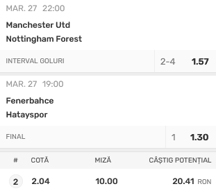 Manchester United – Nottingham Forest Interval goluri 2-4 (minim 2, maxim 4 goluri)